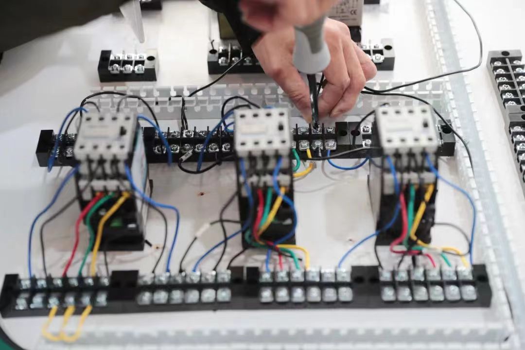 此次電工技能競賽分理論和實操兩部分。理論知識為閉卷筆試,考核參賽選手的電工專業基礎知識、安全操作規程等內容;實操部分為在規定時間內完成輪流進行徒手心肺復蘇和星三角降壓啟動電路接線兩項技能比拼。