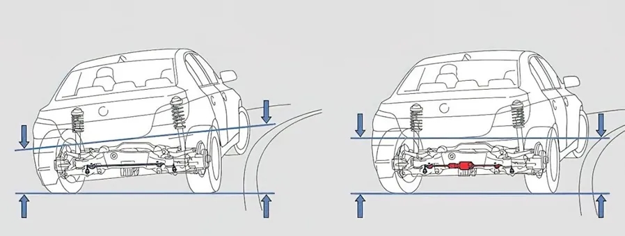 當車輛高速轉彎時,被動穩定桿通過其獨特的力學機制,將外側車輪產生的扭力傳遞至內側車輪,從而有效減輕車身的側傾程度。