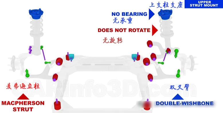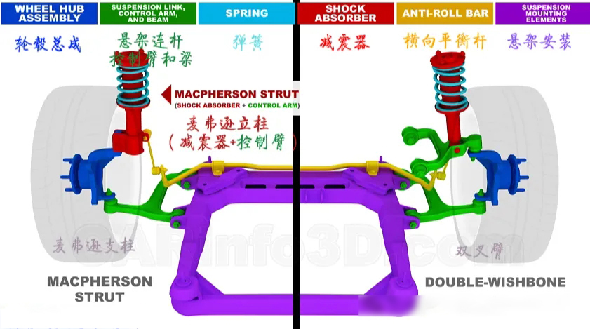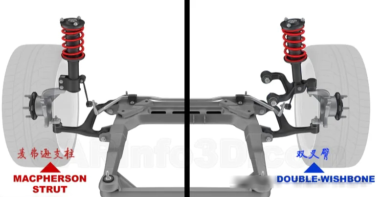 獨(dú)立懸架中最典型的是麥弗遜懸架和雙叉臂懸架。