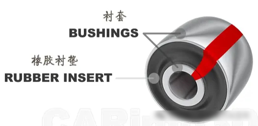 橡膠襯套由兩層金屬襯套組成,內(nèi)部嵌入橡膠襯墊,是一種常見的連接元件。控制臂、扭力梁和減震器等的固定都依賴于這種部件。