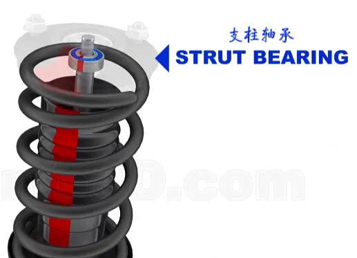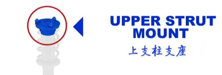 減震器的安裝,上支柱支座是由橡膠襯墊連接的,同時(shí)由于其底部需要隨控制臂旋轉(zhuǎn)(麥弗遜式懸架),所以中間有個(gè)支柱軸承。