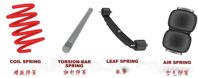 汽車懸架系統(tǒng)中用的彈簧主要有四種:螺旋彈簧、扭桿彈簧、板簧和空氣彈簧。