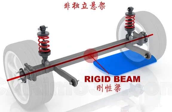 非獨(dú)立懸架,顧名思義,其左右兩側(cè)車輪通過一根剛性軸相連,一側(cè)車輪的起伏會(huì)直接影響另一側(cè),導(dǎo)致車身晃動(dòng)明顯,多見于貨車、客車及部分SUV。