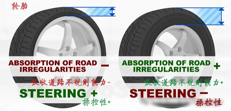 厚薄不同的輪胎,其舒適性和操控性是不同的。