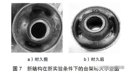 為驗(yàn)證新設(shè)計(jì)的有效性,團(tuán)隊(duì)在實(shí)驗(yàn)室MTS多通道試驗(yàn)臺(tái)架上進(jìn)行了耐久疲勞試驗(yàn)。結(jié)果顯示,新結(jié)構(gòu)襯套在V2方向交變60萬(wàn)次、V1方向交變13萬(wàn)次后,均未出現(xiàn)裂紋,證明了其疲勞耐久性能的顯著提升。