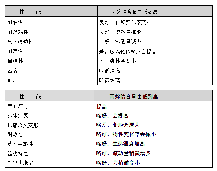 丁腈橡膠的性能與丙烯腈含量的關系