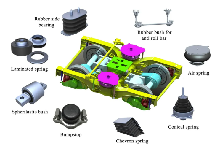 天然橡膠(Natural Rubber, NR)因其出色的彈性和耐久性,成為各類減震器和隔震裝置的首選材料,如汽車懸掛系統中的橡膠襯套、橋梁隔震支座以及軌道交通中的減震墊等。其獨特的分子鏈結構使得橡膠在周期性應力作用下能夠迅速恢復原狀,這種高彈性源自橡膠分子鏈的卷曲狀態以及交聯網絡的穩固支撐。橡膠產品發白