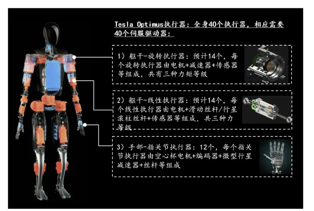 人形機(jī)器人不同執(zhí)行器零部件構(gòu)成圖示: