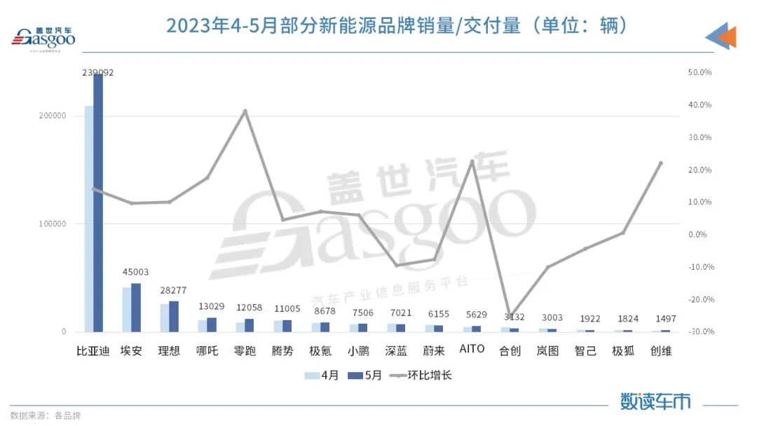事實上,就目前國內(nèi)新能源市場的表現(xiàn)來看,比亞迪幾乎沒有競爭對手。2023年5月份,比亞迪新能源車的銷量接近24萬輛,而排名第二的特斯拉在國內(nèi)的銷量為7.8萬輛。
