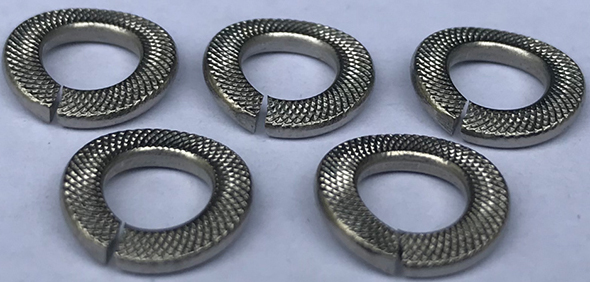 早期為了解決這個問題,彈簧墊圈就出現了。彈簧墊圈由于有預張力,在螺母壓緊彈簧墊圈后,在預張力的作用下,螺母內三角形的螺扣與螺栓三角形的螺扣的一側,就緊緊的貼在一起,在摩擦力的作用下,螺母就不再出現松動的情況了。